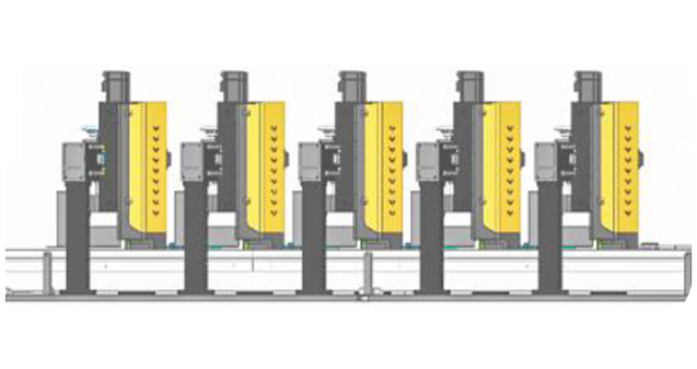 All print heads can be adjusted in the same horizontal position by precisely moving each carriage up or down. Y-axis servo control for easy adjustment for each carriage based on product printing position. |